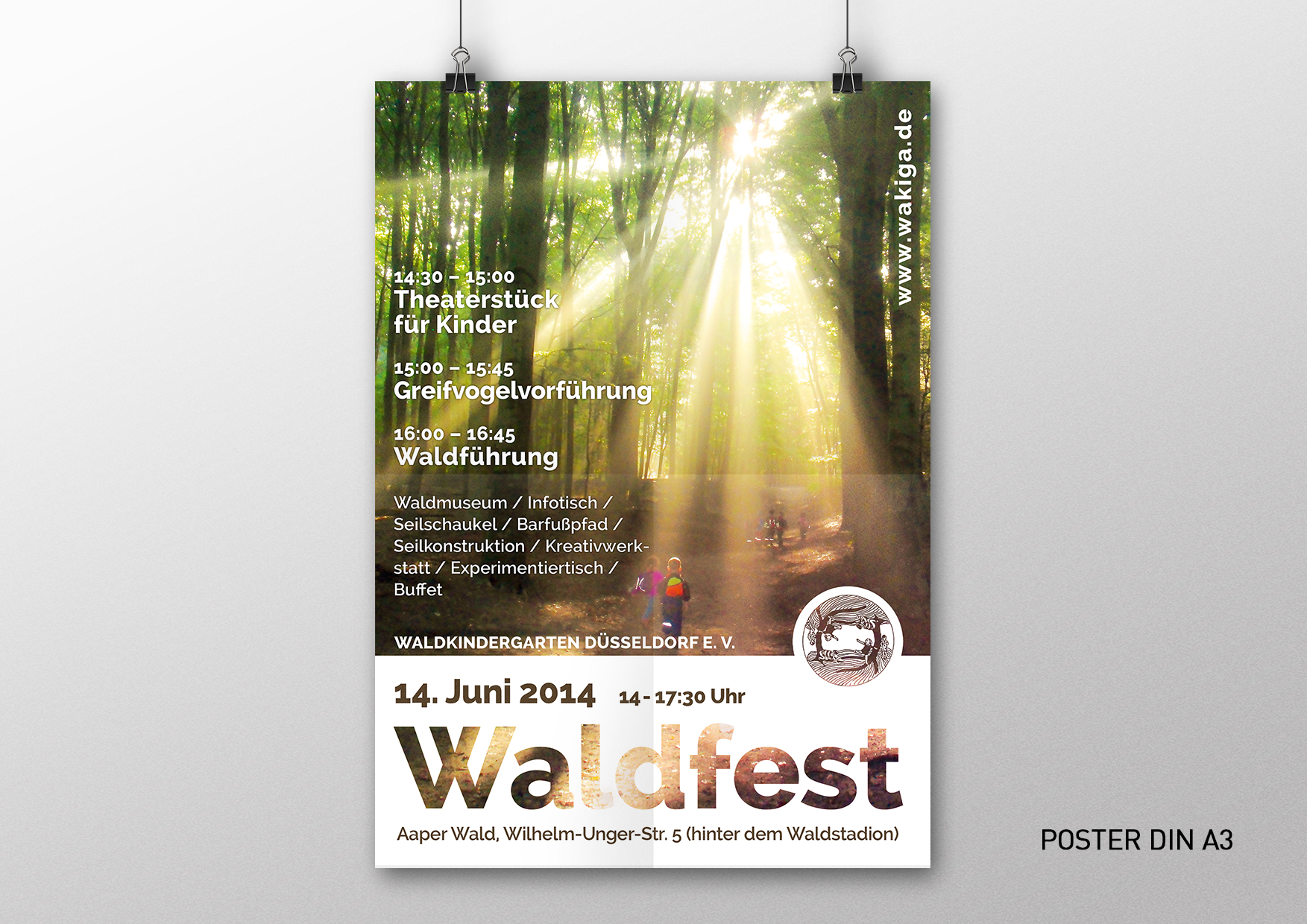 In meiner ehrenamtlichen Tätigkeit als Beisitzerin des Vorstandes des Waldkindergarten Düsseldorf e.V. (zuständig für den Bereich Presse- und Öffentlichkeitsarbeit), habe ich die Waldzeitung, Poster, Flyer und Weihnachtskarten erstellt.